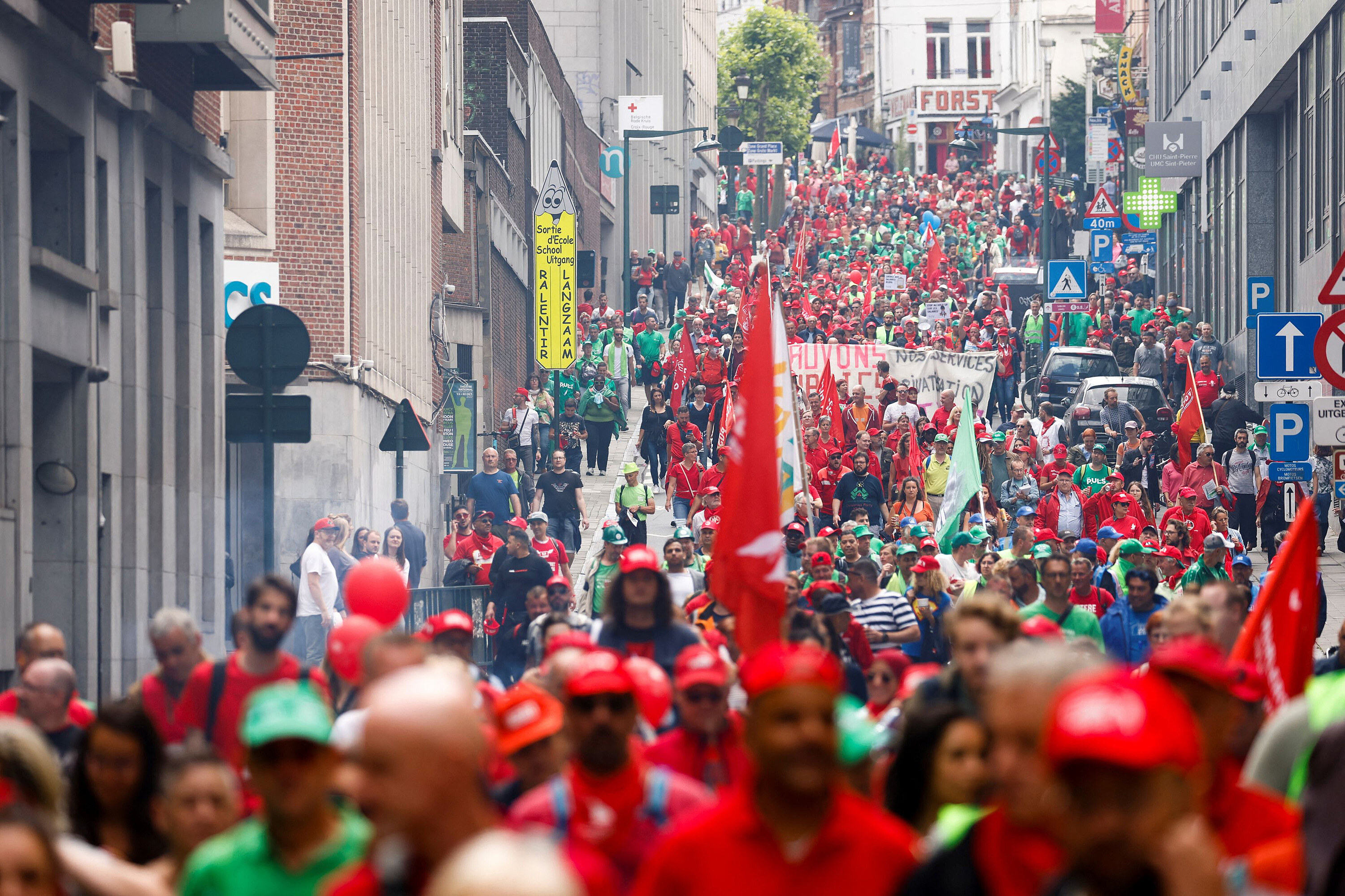 Bruselské letiště informovalo, že nemůže povolit lety s pasažéry, neboť protestní akce se rozšířila i na bezpečnostní personál. Místní veřejná doprava jezdí minimálně.