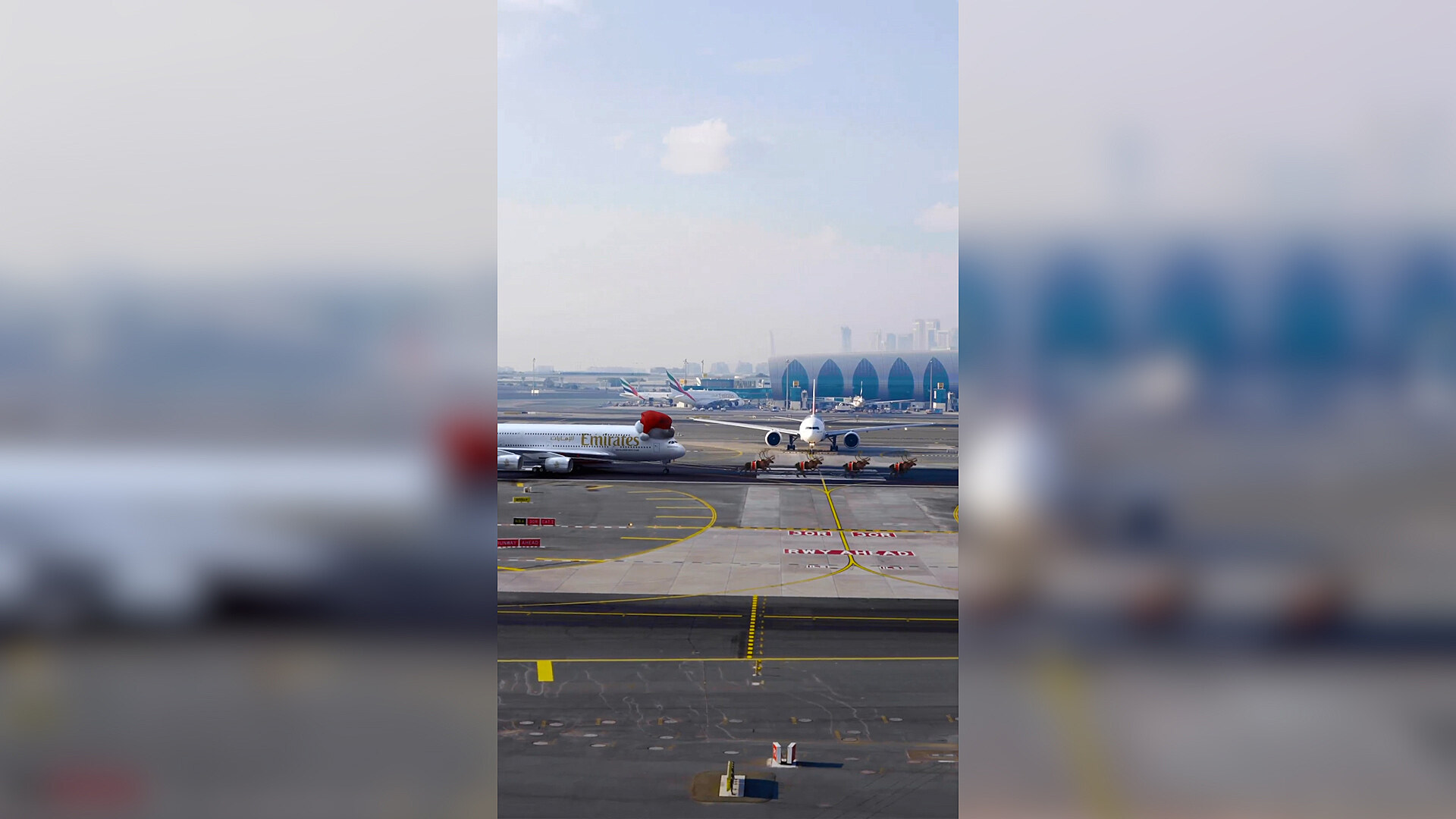 Na videu má letadlo i nasazenou typickou santovskou čepici. „Kapitán Santa žádá o povolení ke vzletu. Veselé Vánoce z Emirátů,“ stojí v popisku k reklamě.