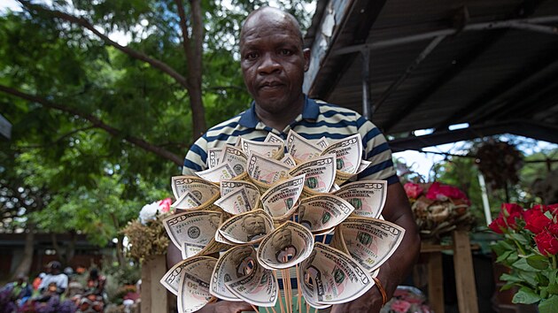 Na desítky let starém květinovém trhu v hlavním městě Zimbabwe Harare květinář Tongai Mufandaedza trpělivě sestavuje jednu z takových bankovkových kytic. Pomocí lepidla a bambusových tyčí složil padesátidolarové bankovky (zhruba 1 020 korun) do tvaru kuželu a propletl je se stonky bílých růží.