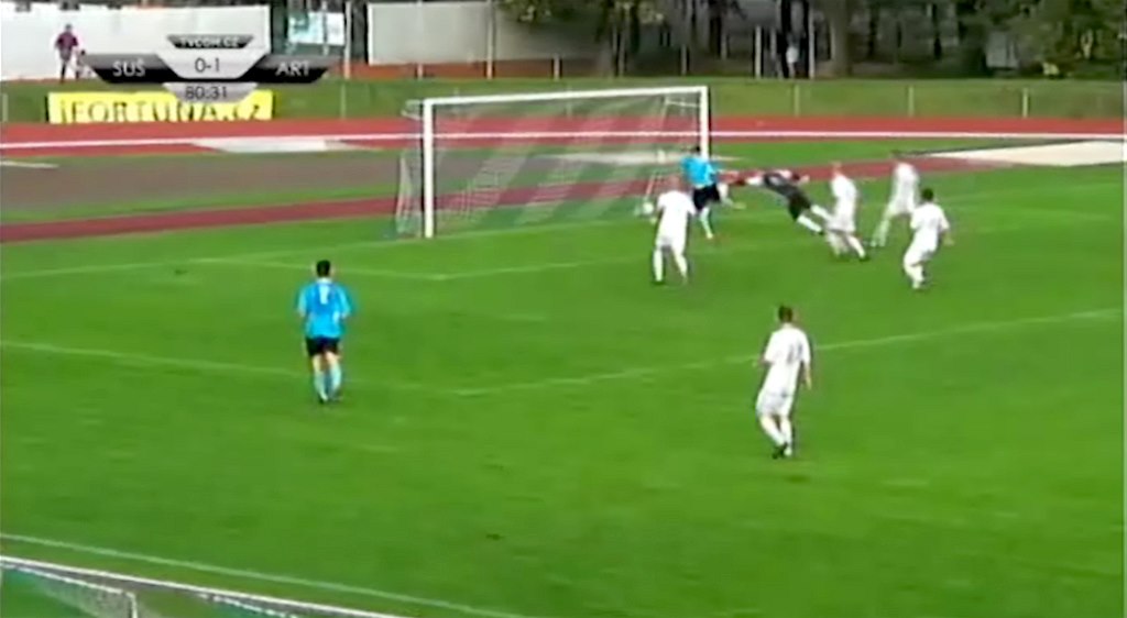 Domácí zatáhli hru po pravé straně hřiště, na těsném prostoru udrželi balón a jeden z táborských hráčů poslal přesnou přihrávku do malého vápna, kde Stuchlíkovi už jenom stačilo nastavit nohu.