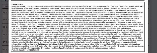 Stejný názor pak hosté vyjádřili v oficiálním protestu, který je součástí zápisu o utkání.