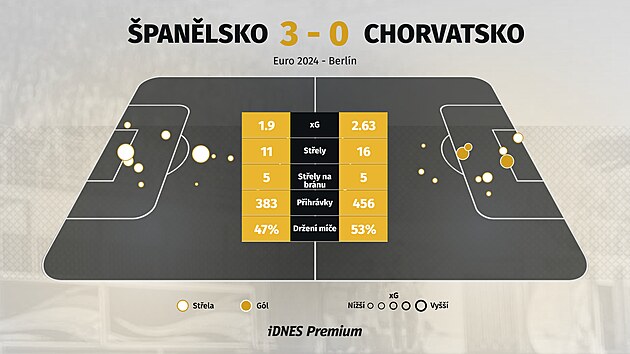 O chvíli později měli Chorvati obrovskou možnost vrátit se do zápasu, jenže střelu volného Stanišiče z malého vápna obětavým zákrokem zblokoval obránce Cucurella. Brankář Simón se na místo, kde ho bylo potřeba, teprve přesouval z druhé strany.
