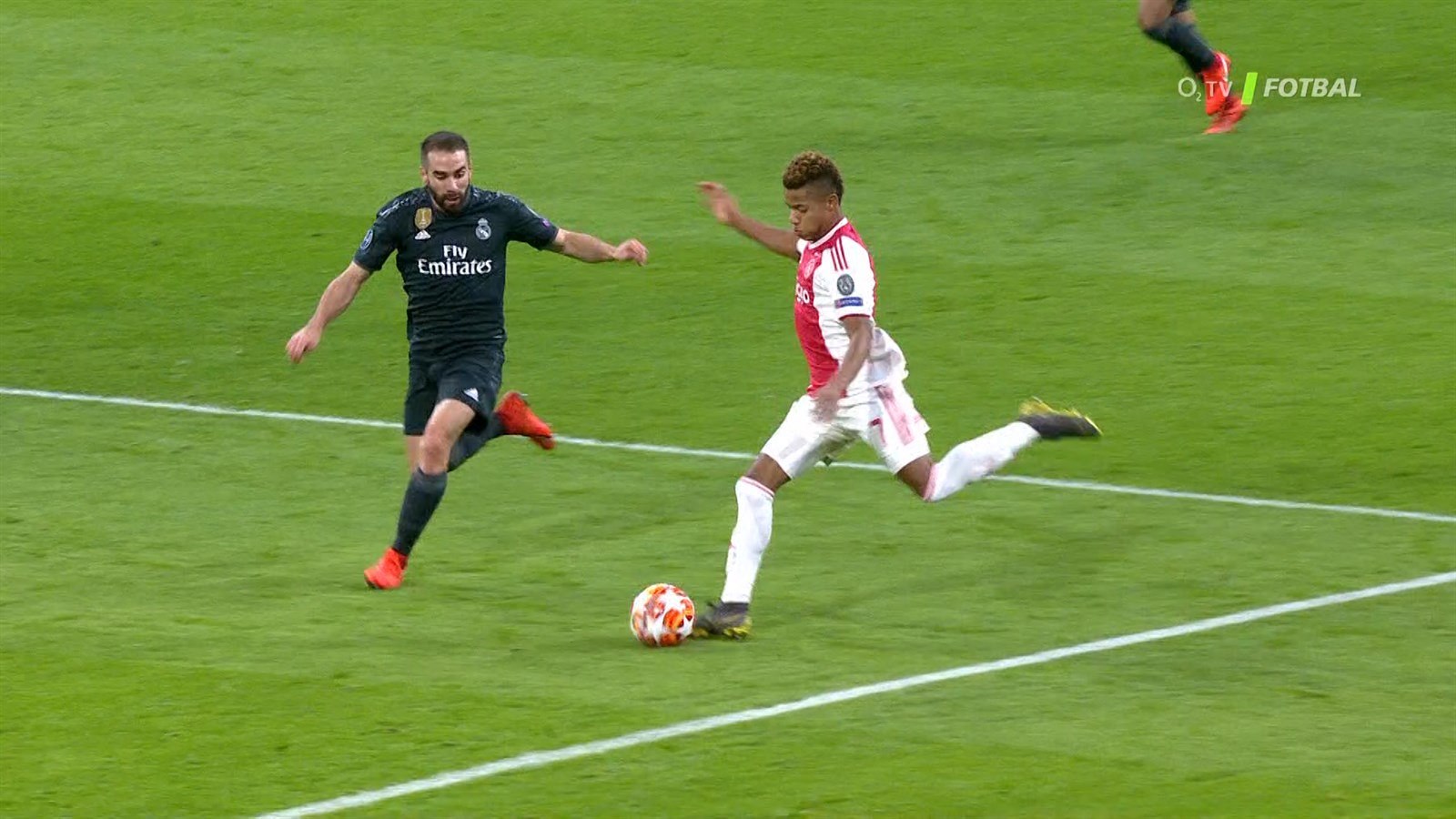 Po skrumáži na malém vápně Realu domácí Nicolás Tagliafico hlavičkoval ze čtyř metrů mimo dosah brankáře Thibauta Courtoise. Jenže v tu chvíli Dušan Tadič stál těsně před gólmanem, byli v kontaktu.