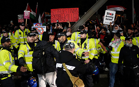 Protesty před zápasem Aston Villy, kam nemohli Izraelci. Policie zatkla 11 osob |