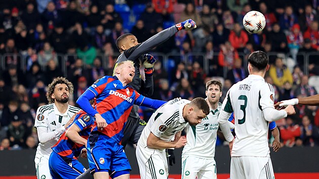 Přesnými nahrávkami se hosté uměli dostat hodně blízko. Skoro každý úvodní výpad byl nebezpečný. V hostujícím zeleném růžku to jen zahučelo, když si našteloval balon Kyriakopoulos, jenže pálil jen do Jemelky. A hra se pomalu začala přelévat.