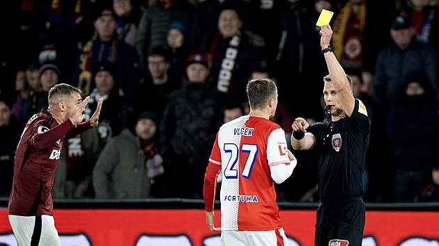 První žlutou kartu tasil v 11. minutě, což mělo nastavit jasný metr. Ale jakmile na přetažený balon naskakoval na hranici vápna slávista Cham a tečoval ho nataženou rukou, kartu neukázal.