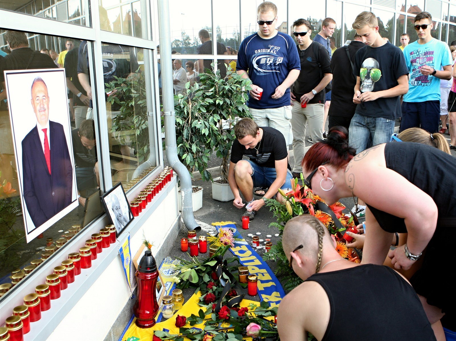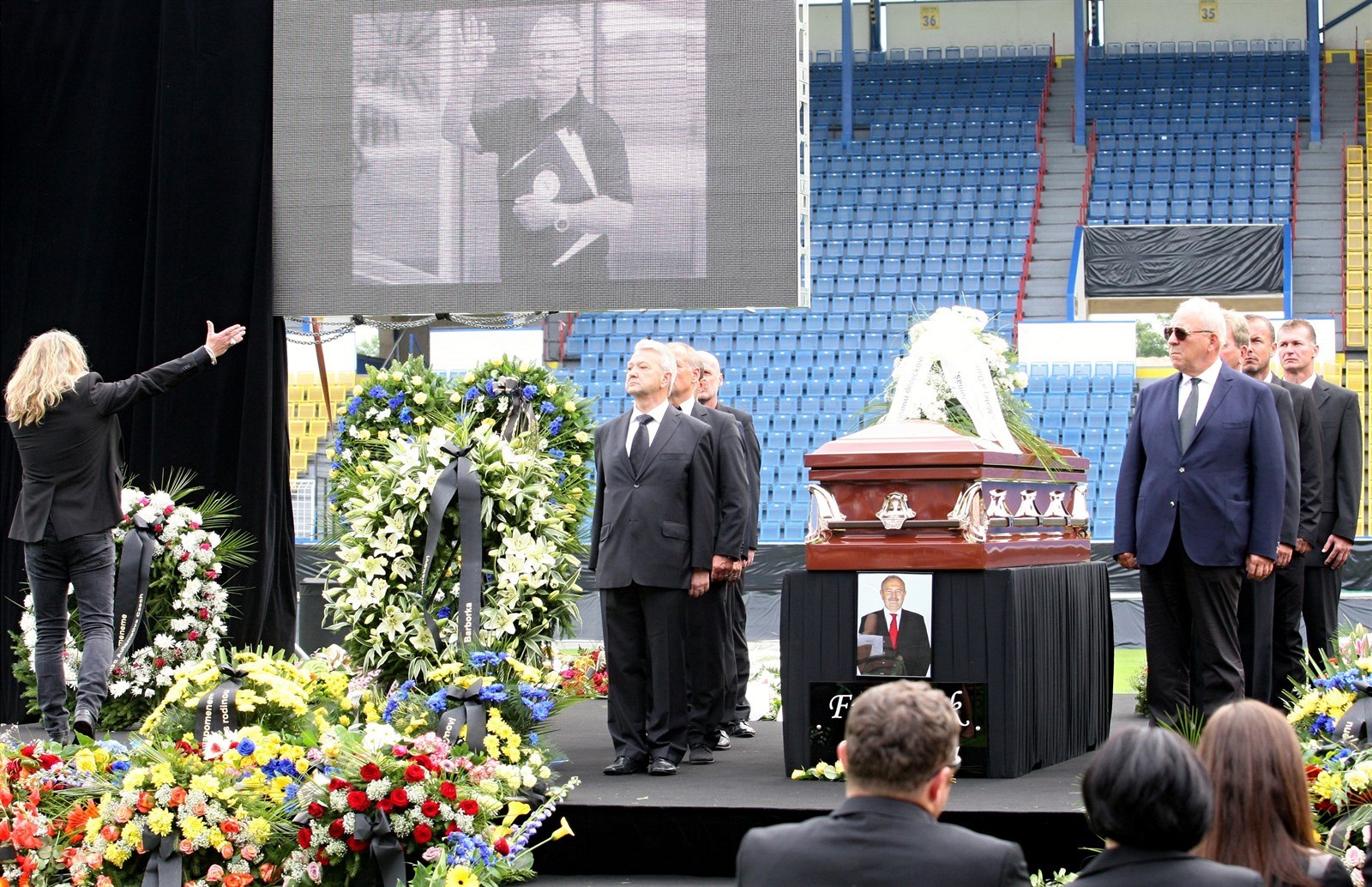 POHŘEB. Na pohřbu Františka Hrdličky, šéfa teplického fotbalu, stáli čestnou stráž mimo jiných trenéři Petr Rada, Michal Bílek či bývalý předseda fotbalového svazu František Chvalovský. Poslední rozloučení se konalo přímo na trávníku na Stínadlech.