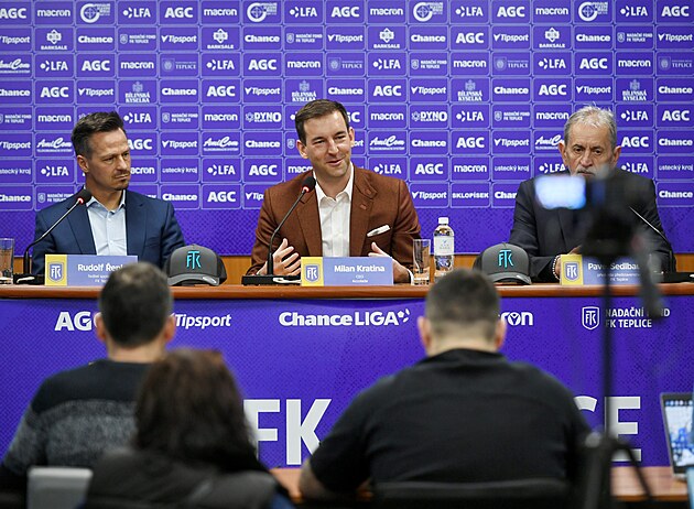 NOVÝ MAJITEL. Klub převzal miliardář Milan Kratina coby zástupce společnosti Accolade (uprostřed). Vedle něj ředitel Rudolf Řepka (vlevo) a předseda představenstva Pavel Šedlbauer na tiskové konferenci, kde se změna vlastníka oznamovala. Kratina chce postupně zrekonstruovat stadion, mládeži vystavět tréninkovou akademii a časem vrátit Teplice do pohárové Evropy. Jaká bude jeho éra?