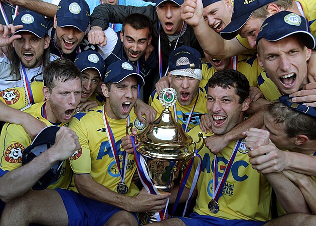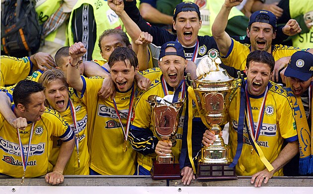POHÁR POPRVÉ. Teplice dvakrát získaly Pohár ČMFS, poprvé hráči s trofejí křepčili v roce 2003 po finálové výhře nad Jabloncem 1:0. Zařídil ji Hunal, zápas se hrál na Strahově. Euforii neskrývali Horváth, Kolomazník, Voříšek, Zelenka, Skála ani Gabriel. Odměnou byla vstupenka do Poháru UEFA.