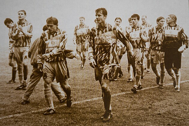 BITVA. Památnější zápas než ten se Slavií asi těžko hledat, i když jich v Teplicích zažili víc. Slavia vedla brzy po gólu Vágnera, před 18 500 diváky však domácí po gólech Řízka, Fouska a Verbíře otočili na konečných 3:1.