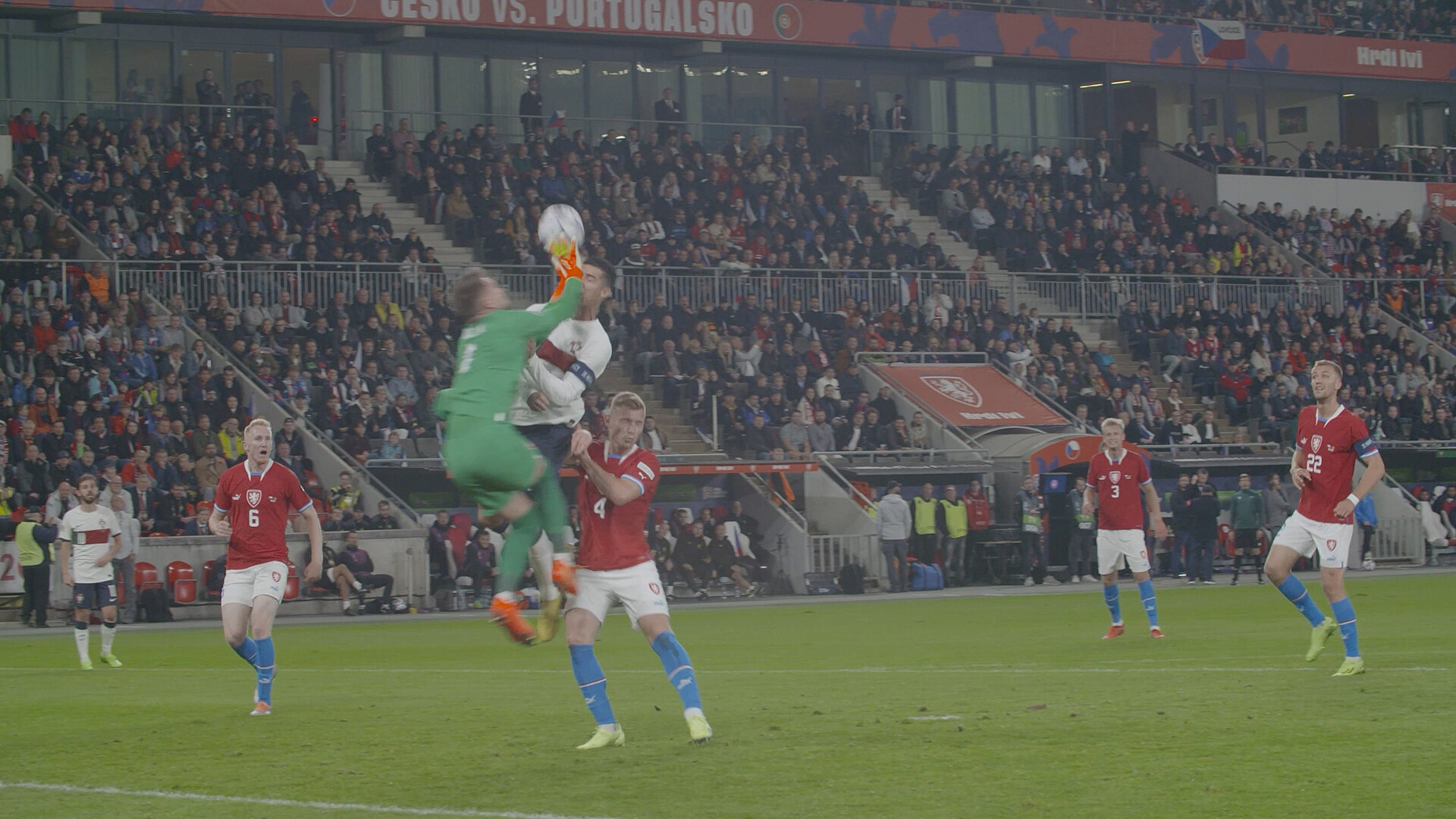 Září 2022, Liga národů, Česko - Portugalsko, 13. minuta. Do vápna se snáší vysoký balon. Vaclík jde po něm rukama napřed, Ronaldo hlavou. Dochází ke střetu. Zlomený nos? Kdepak. CR7 však dohrává duel, který skončil jasnou výhrou favorita 4:0, s krvavým šrámem.