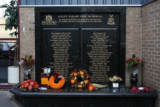 Pokud byste se někdy procházeli centrem Bradfordu, určitě si všimnete zeleného památníku, který připomíná mrtvé. Bronzová vzpomínka je také na hlavní tribuně stadionu Valley Parade, která vyrostla půldruhého roku po neštěstí.