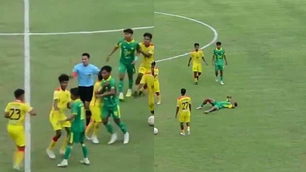 Muhammad Hilmi Gimnastiar na něm přiletí do souboje a místo toho, aby zasáhl míč, natáhne nohu a kopačkou trefí soupeře Firmana Nugraghu Adhiansyaha přímo do hrudníku. Naprosto cíleně.