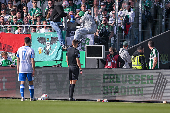 Jak popisuje německý deník Bild, jeden z nejaktivnějších příznivců domácích přiskočil k trávníku a od monitoru odpojil kabel, takže sudím znemožnil pokračovat.