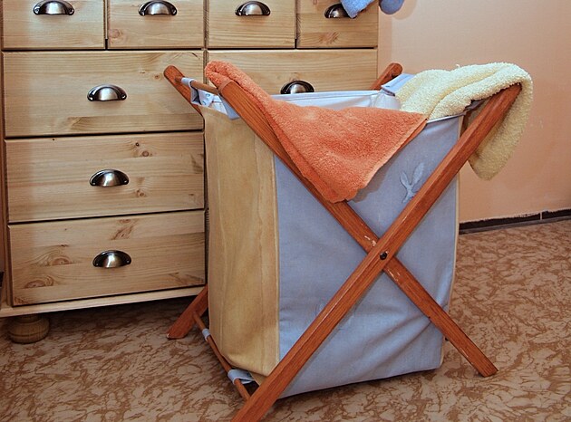 Do malé koupelny i do většího prostoru užijeme skládací koš na prádlo, který se, když jej nepoužíváme, dá složit naplocho a nezabírá zbytečně místo. Ať už jej použijeme na prádlo špinavé nebo čerstvě vyprané a usušené čekající na žehlení, výhodou je, že prádlo bude větrat.