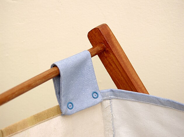 V dolním švu dna budou všita poutka, která připnou potah ke spodním příčkám koše. Sešijeme boční švy potahu, kraje švů obšijeme entlovacím stehem.