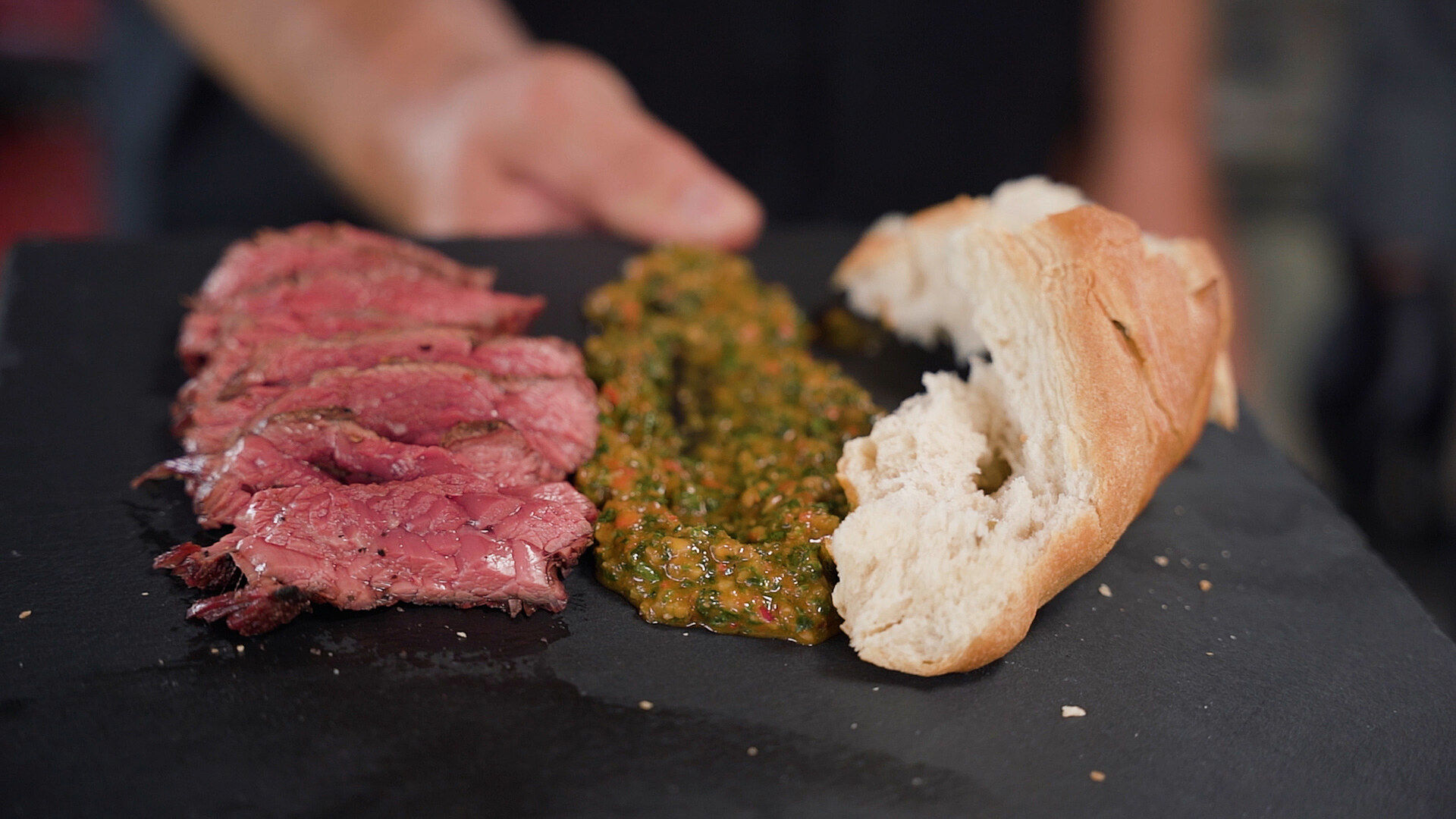 Na klasickou variantu zvolil 30 dnů stařený skirt steak z pupku od Maso Klouda. Jeho kolega Daniele se rozhodl steak marinovat a sáhl po hovězím z mladých býků z Choťovic, jejichž steaky zrají 14 dnů.