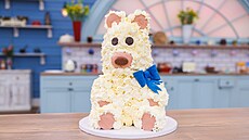 Právě dětský třiceticentimetrový dort v podobě chlupatého plyšového medvěda byl čtyřhodinovou kreativní výzvou. „Tento dort patří do kategorie, které se říká cukrářská skulpturní artistika,“ popsal výzvu Josef Maršálek. „Základním stavebním kamenem pro tyto 3D dorty je dostatečně pevný korpus i krém,“ doplnila Míša Landová, co je u takového dortu důležité.