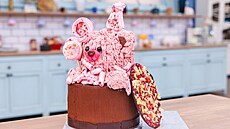 Tři hnědí medvědi byli jeden z piškotového těsta, druhý čokoládový a Vojtův red velvet s jahodovoibiškovým gelem, takže po rozkrojení začal krvácet – což byl Vojtův trochu morbidní fórek. Oko diváka jistě potěšil také bílý čokoládový medvěd od Kláry nebo Terezin růžový z banánového korpusu.