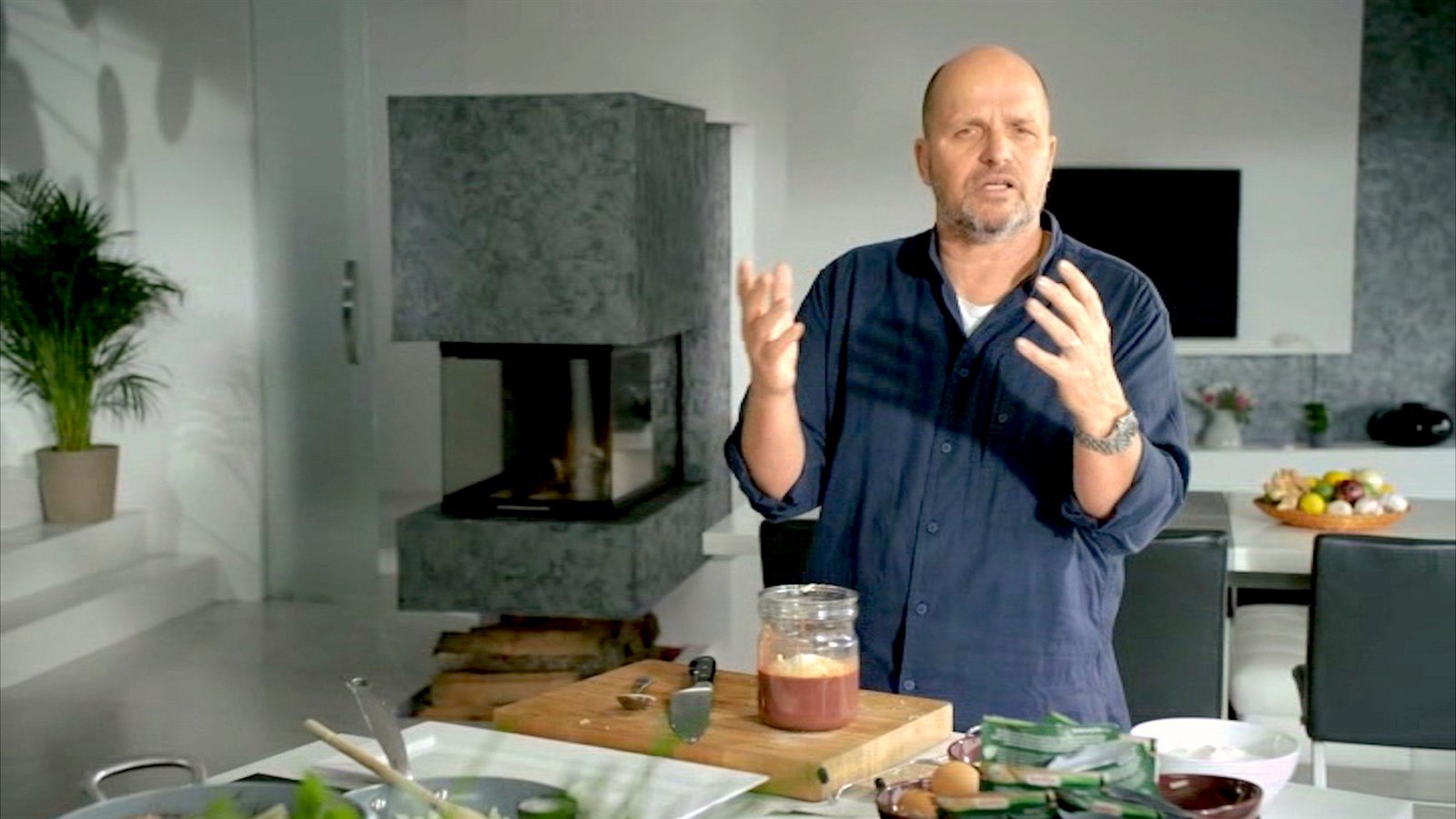 Například játrovým knedlíčkům. Zdeněk Pohlreich si přichystal misku drůbežích jater a v úzké a vysoké nádobě je rozmixoval tyčovým mixérem. Pak je třeba je ochutit: na hodně drobné kousky nakrájejte cibuli a orestujte ji na másle. Mezitím hmotu osolte, opepřete, nastouhejte stružek česneku. Přidejte trochu strouhanky a trochu hladké mouky. „S moukou opatrně, když to přeženete, tak je to strašně hnusný,“ ošklíbá se Pohlreich.