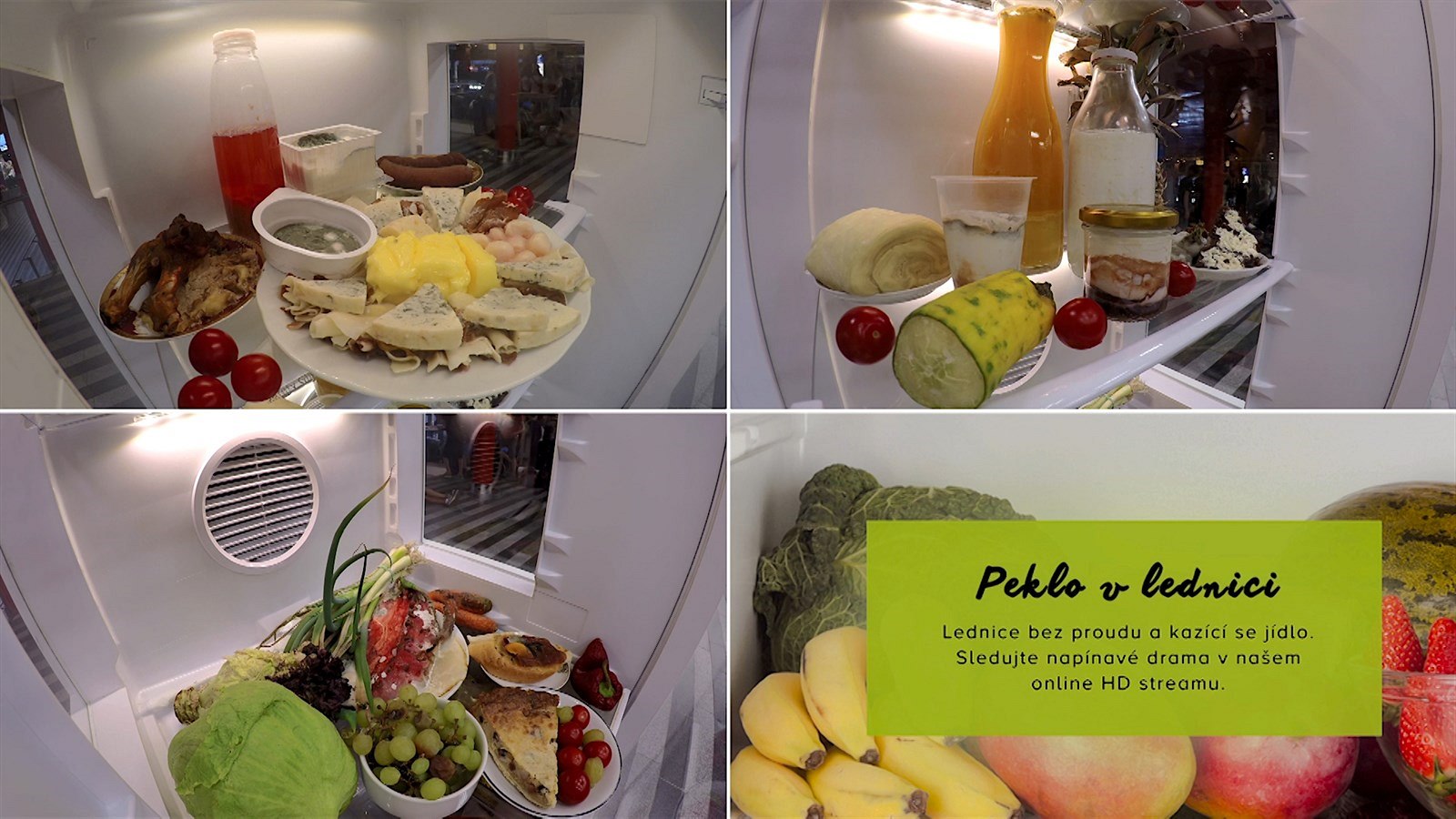 Pojišťovna uspořádala happening, kdy do prostor pražského Hlavního nádraží nainstalovala prosklenou lednici a hodlá ji tam nechat tři týdny. Podívejte se na krátké video a do fotogalerie, kde se ukazuje, jak s potravinami zahýbal čas během prvního týdne. Pravidelní cestující tak mohou den po dni sledovat všechny změny, které se s obsahem lednice dějí. A mohou si představovat, jak by to mohlo vypadat u nich doma po dovolené, kdyby vypadly pojistky.