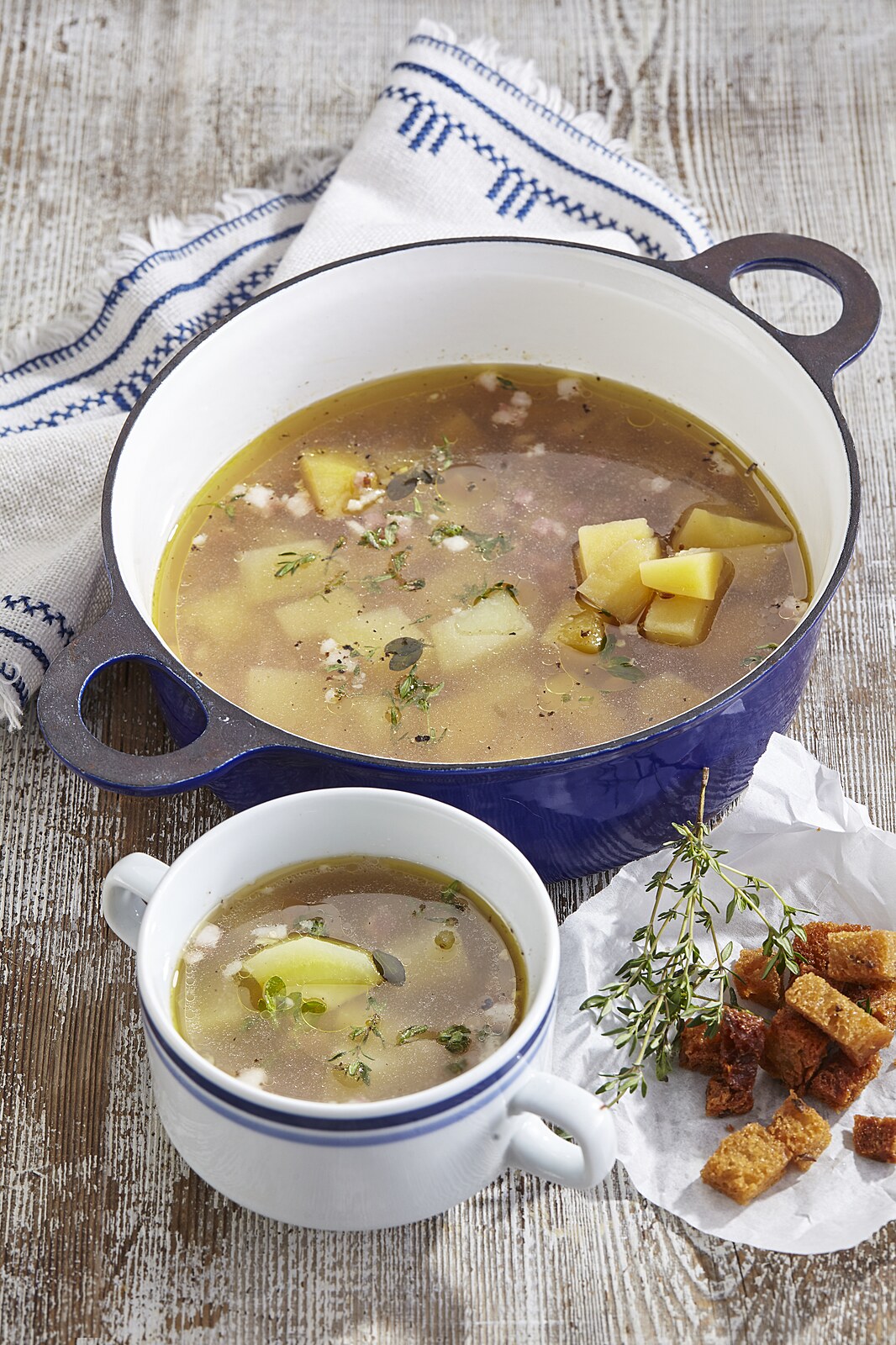 34. Ačkoli byla původně považována za jídlo chudých, tato krémová bramborová polévka známá jako bramboračka se stala jednou z klasik české kuchyně. Objevuje se v mnoha variantách, ale převážně obsahuje jednoduché ingredience, jako je kořenová zelenina, sušené houby a různé čerstvé nebo sušené koření.