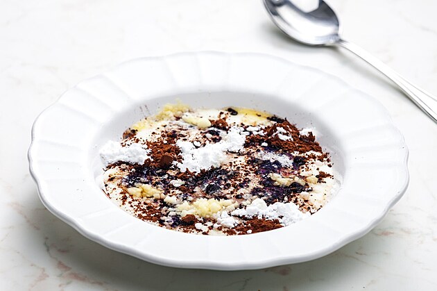 32. Krupicová kaše se připravuje z mléka, krupice a cukru. Často se ochucuje vanilkou a skořicí. Mléko se zahřeje, vmíchá se krupice a směs se poté míchá, dokud nezhoustne a nezhoustne.