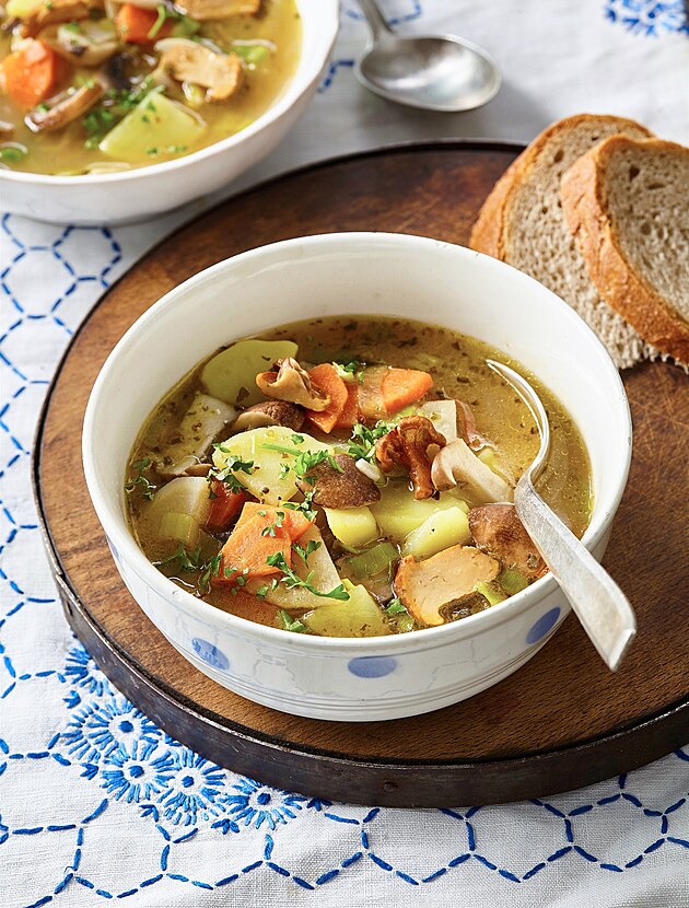 15. Ať už se připravuje houbová polévka se sušenými, čerstvými, mraženými nebo konzervovanými houbami, tato tradiční česká polévka se vyznačuje krémovou konzistencí a zemitou chutí. Obvykle obsahuje chutné vývary a různou zeleninu, přičemž celý pokrm je občas zahuštěn smetanou nebo moučnou jíškou.