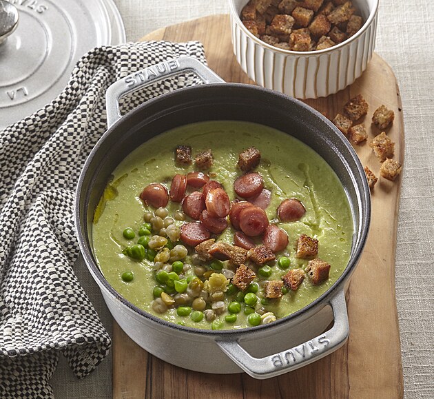 10. Hrachovka: tato tradiční česká polévka se připravuje z čerstvého hrášku, zeleného nebo žlutého hrášku. Často obsahuje chutné vývary, různou kořenovou zeleninu, uzené maso a koření, jako je kmín nebo majoránka. I když se může lišit barvou a konzistencí, obvykle se doplňuje lžící smetany nebo křupavými krutony a poté se podává jako výživný předkrm.