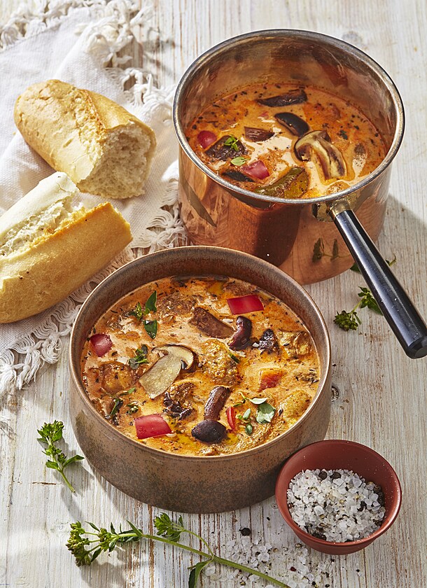 24. Rajská polévka: Ať už se připravuje s čerstvými rajčaty nebo s rajčatovou omáčkou, tato krémová a osvěžující polévka je základním pokrmem tradiční české kuchyně. Obvykle se dochucuje bobkovým listem, novým kořením nebo hřebíčkem a zahušťuje se restovanou cibulí a moukou.