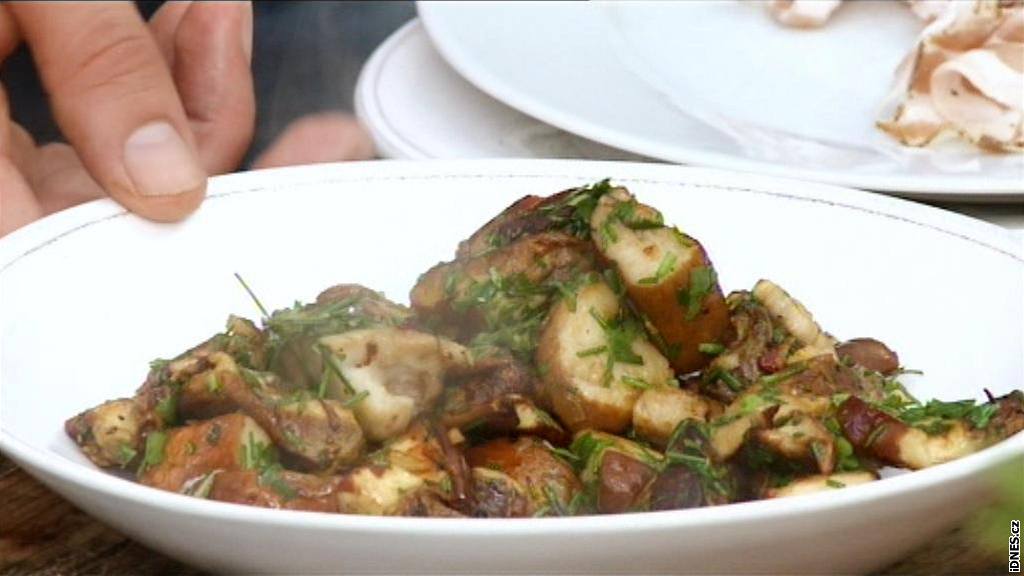 "Já mám rád, když to trochu křupne," vysvětluje Pohlreich při restování hříbků na pánvi, proč se jejich šetrná úprava vyplatí. Stačí si připravit zhruba 200 až 400 g očištěných čerstvých hříbků, půlku cibule, stroužek česneku, ocet balsamico, citron, panenský olivový olej, hrst petrželové natě, hrst pažitky, rozmarýn, tymián, sůl a pepř.