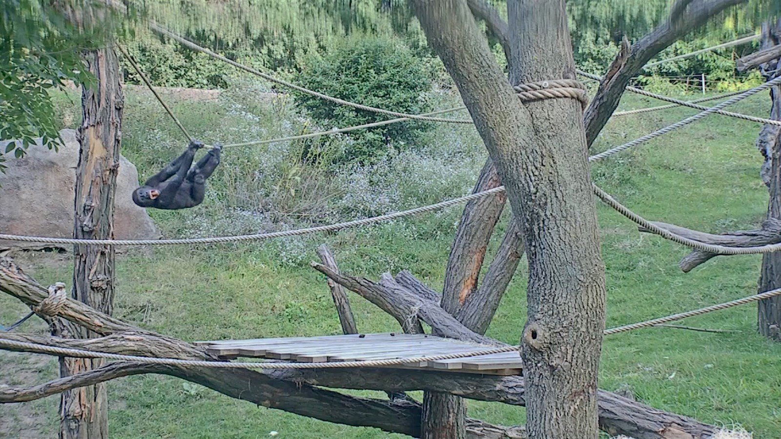 Zato venku je Nuru ve svém živlu. Miluje houpání na lanech, ze kterých se vždycky snaží urvat pár větviček s listím z vrby nebo jasanu. Rád také „loupí“ trávu za elektrickými ohradníky. I kamera ho přistihla (viz úvodní video), jak pod ohradník opatrně u stromu podsouvá ruku, aby ulovil chutnější trs trávy.