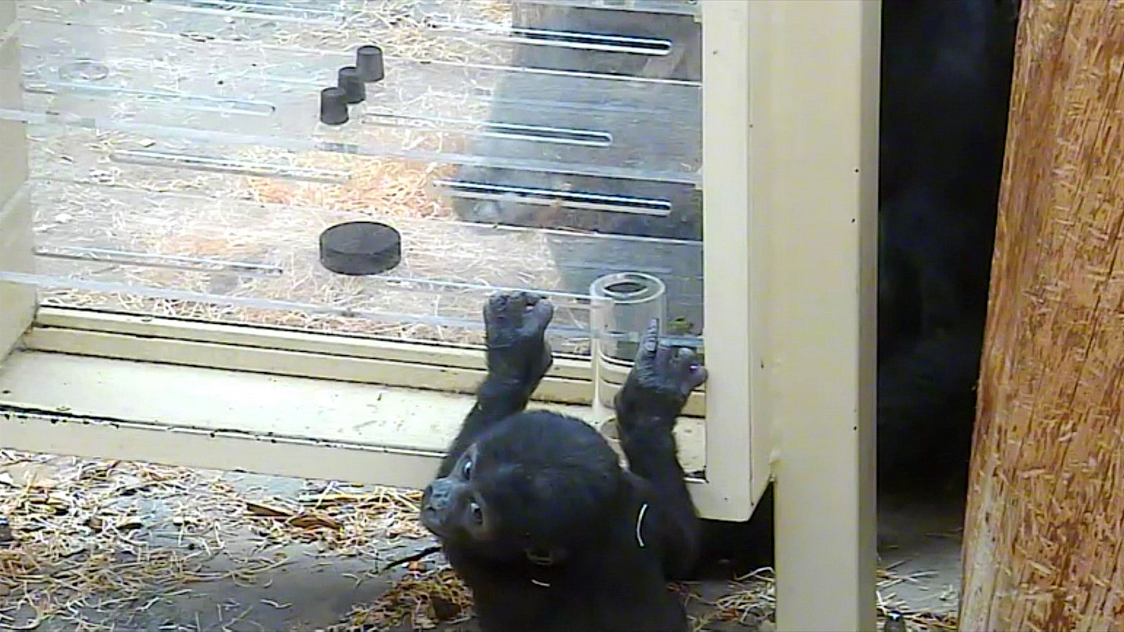 Jediná mláďata se snažila přijít na to, jak dostat granule z hlavolamu – když se dostaly dovnitř, musí přeci jít i ven. Kiburi se nejprve urputně pokoušel prostrkat granule otvory vytvořenými pro klacík, přičemž drtil granule na menší kousky jazykem i klacíky.