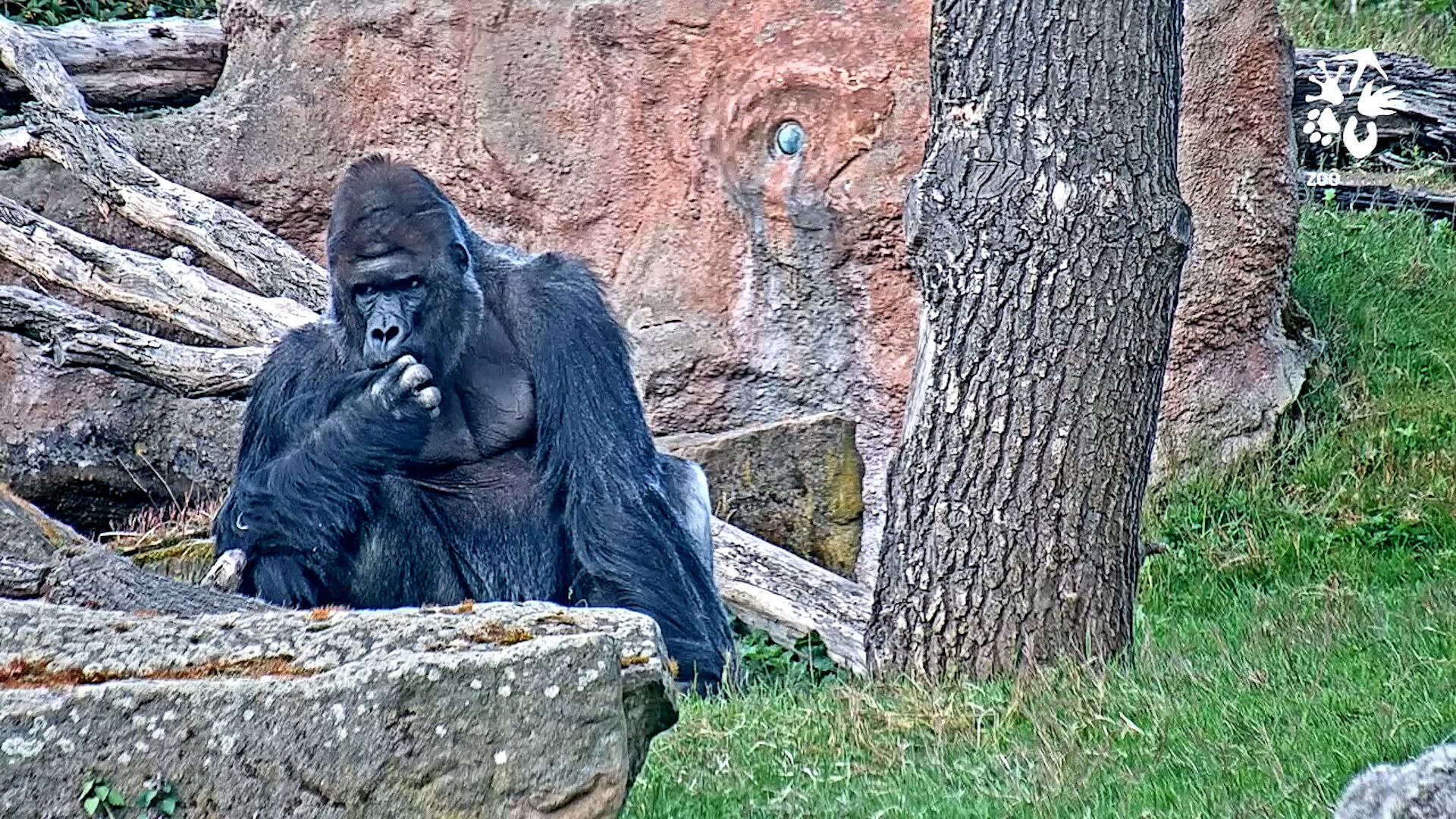 A že tam je se na co dívat! Gorily si totiž obzvlášť poslední týden, kdy mají venkovní výběh otevřený nonstop, opravdu užívají možnost ožírat trávu i větvičky, houpat se na lanech a požitkářsky se slunit, pokud právě neprší. Ani párek kachen jim nevadí, jak je vidět na úvodním videu. Dokonce si ven nosí i větve k okusu, které jim chovatelé rozhazují uvnitř pavilonu. Tam si chodí jen odpočinout před obědem nebo právě pro žrádlo.