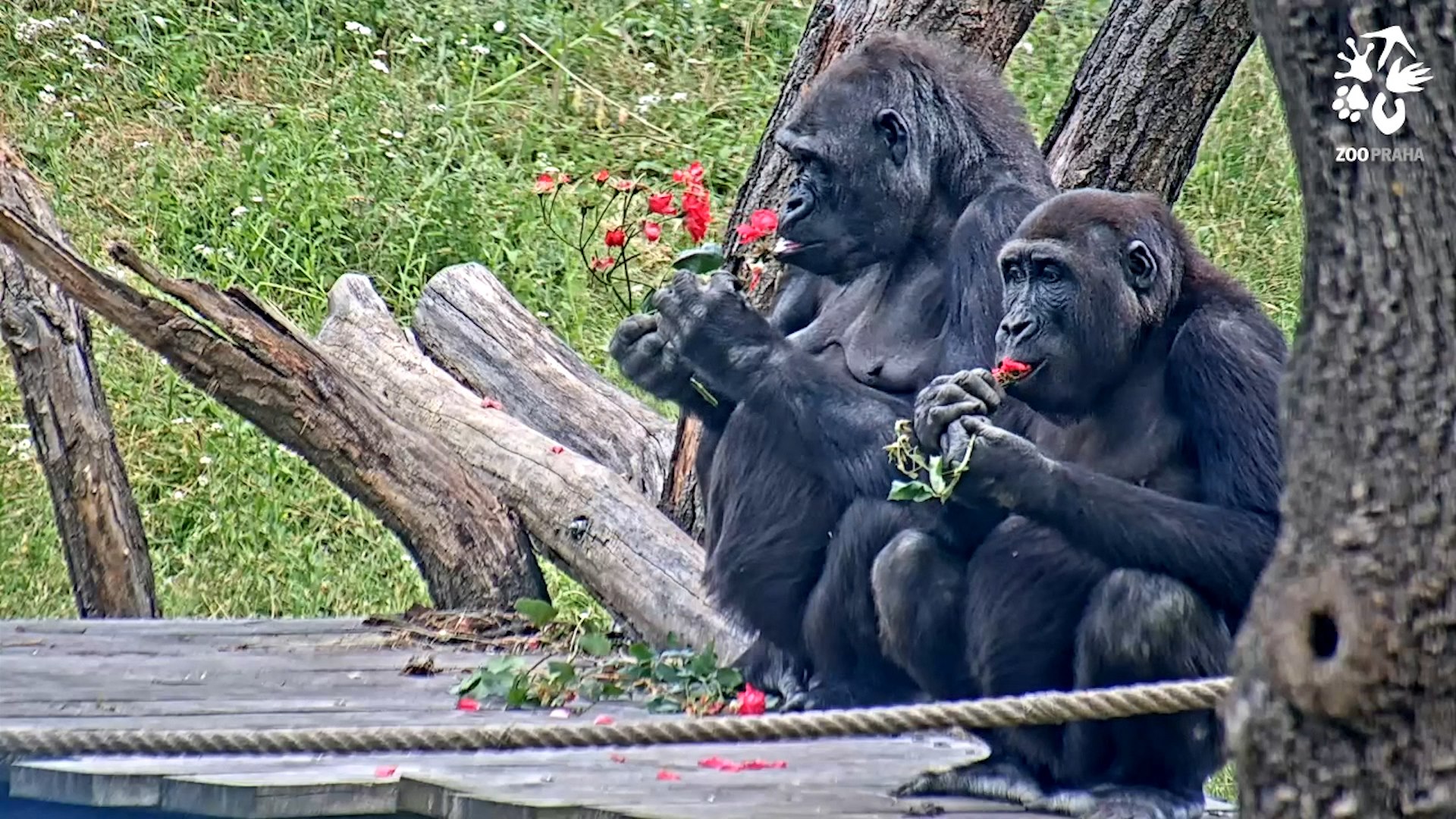 A jak se ke gorilám dostaly růže zachycené na úvodním videu jako největší laskomina? „Růže gorilám občas přidáváme do jídelníčku jako součást enrichmentu, abychom jim zpestřili den. Většinou to bývají růže šípkové, z nichž gorily oberou šípky a listy a pochutnají si na nich. Okrasné, samozřejmě chemicky neošetřené růže ale doslova milují, ty spořádají včetně větviček s trny, nezbude z nich vůbec nic,“ popisuje vrchní chovatel.