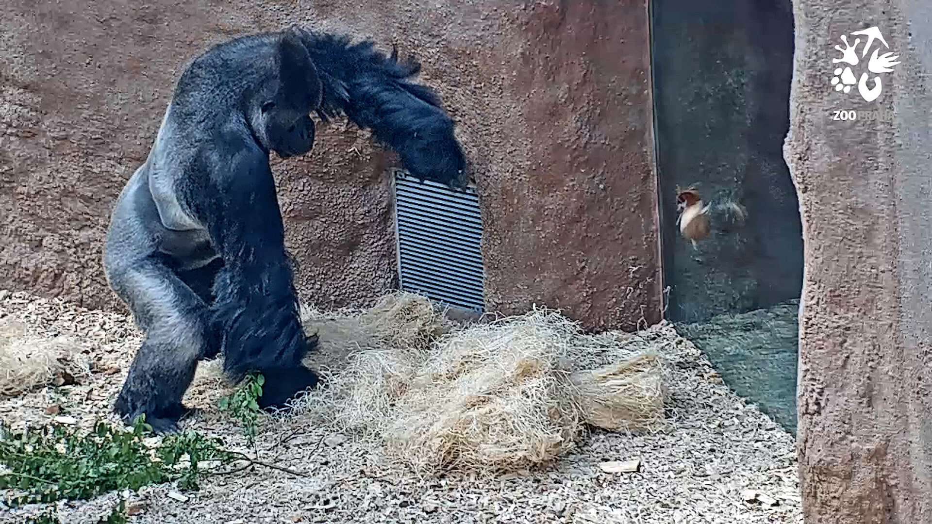 Stříbrohřbetý samec Richard totiž hned napoprvé neomylně zamířil do rohu expozice ke své oblíbené palandě a docela zlehka si kokos naťuknul o stěnu a už si užíval jeho tekutý a posléze i pevný obsah.