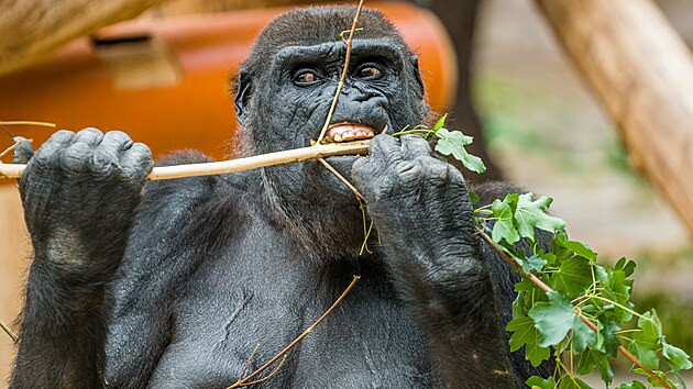 Shinda si totiž zatím s kokosovými ořechy neví moc rady, spíš je jen chvilku nosí a pak odloží, aby měla volné ruce na jiné žrádlo. Třeba čerstvé větve k okusu. „Teď v sezoně se gorily užívají zelené větve šípku, akátu, vrb, lípy, lísky i ovocných stromů,“ vypočítává Martin Vojáček, jaký výběr v létě gorily mají. (S tím, že pokud lidé na zahradách tyto větve v sezoně ořezávají, zoo si je ráda pro své svěřence vezme, ovšem jen bez postřiků.)