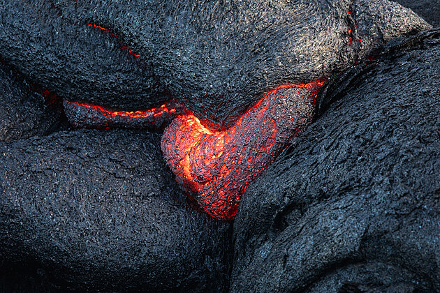 Tekoucí láva ve tvaru srdce na Havaji. Autorka ráda objevuje srdíčka v přírodě.