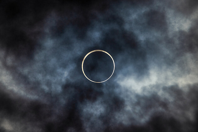 Okouzlující okamžiky pod mystickým prstencovým zatměním Slunce v San Antoniu v americkém Texasu.