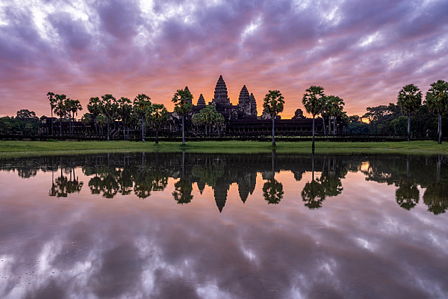 Fotografie chrámového komplexu v Angkoru se zajímavým východem slunce a dramatickymi mraky. Právě po Kambodži a Vietnamu Erika aktuálně cestuje jako průvodce...