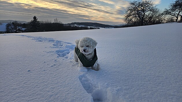 Sníh, míček a já. Víc ke štěstí nepotřebuju