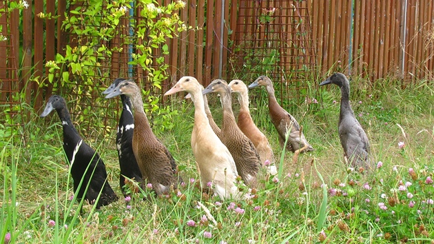 Kachna indický běžec neustále vtipně pobíhá po zahradě a svým nepřetržitým kvákáním komentuje každý nalezený hmyz.