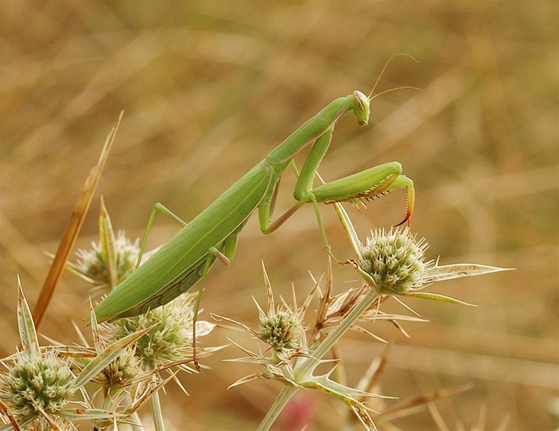 Kudlanka nábožná komunikuje vizuálně, kdy při pocitu ohrožení roztáhne křídla a zaujme fascinující bojový postoj.