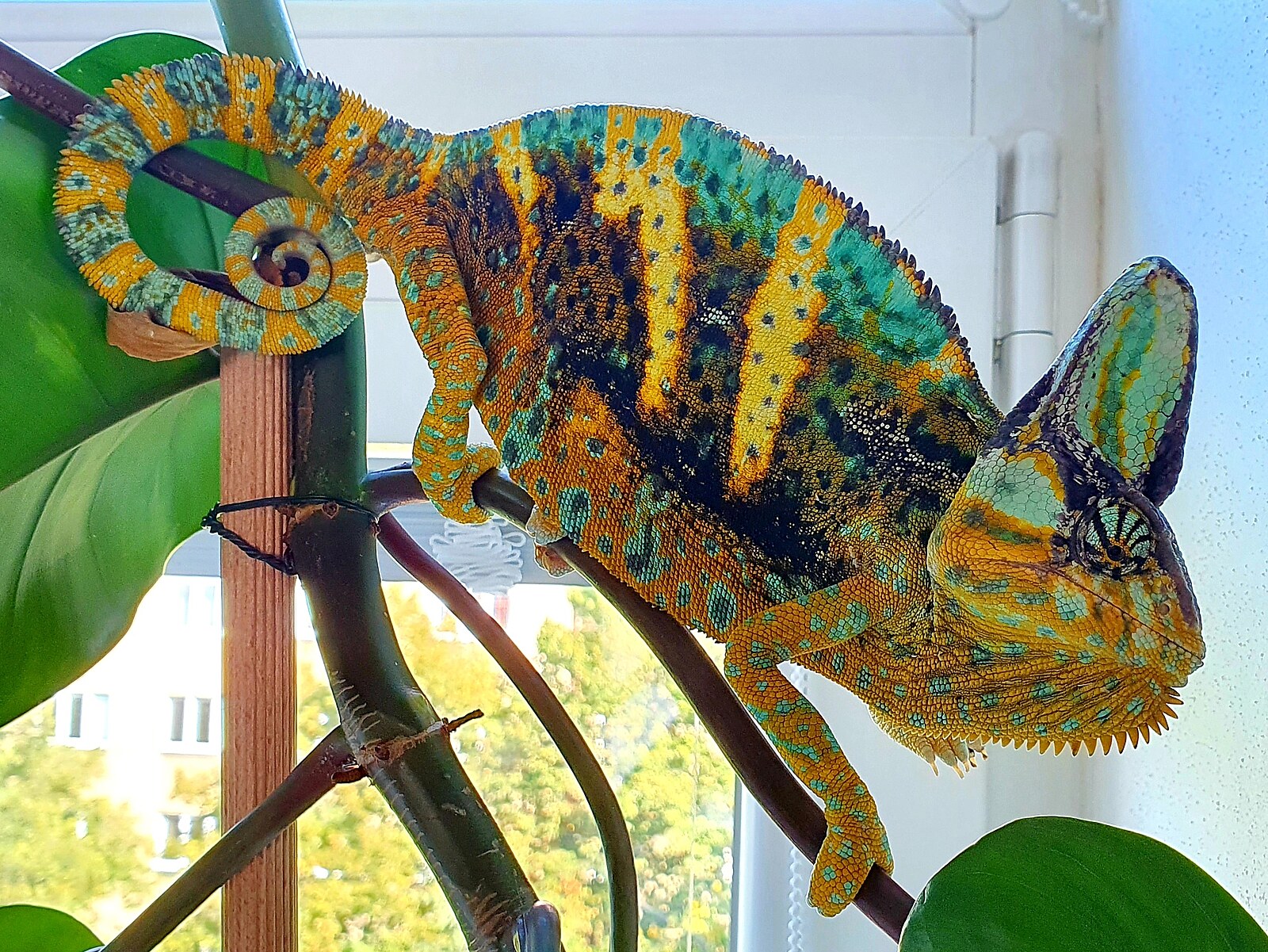 Chameleon mění barvu svého těla podle emocí, takže rudé barvy mohou znamenat agresi a tmavé odstíny zase stres.
