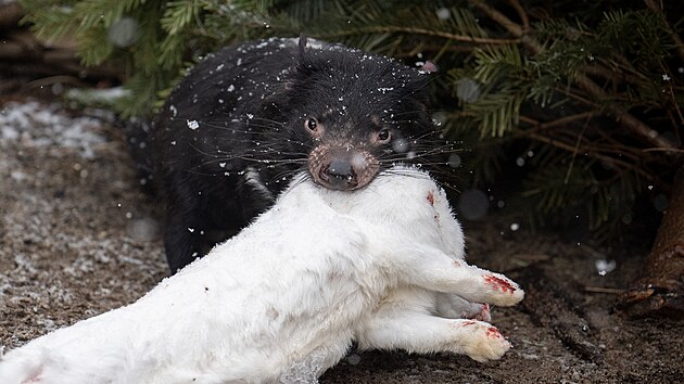 Ďábli medvědovití dělají čest svému jménu a umí se projevovat opravdu hlasitě, což ve čtvrtek s chutí předvedli novinářům, podívejte se na video. Nicméně nebyli úplně ve své kůži, protože v Praze se zrovna celý den sypal z oblohy sníh, který tato zvířata samozřejmě neznají ani z Austrálie, ani z Tasmánie. „Toto je prostě pro ně něco natolik nového, že dneska jeví velmi velkou nedůvěru k tomu, co se kolem nás sype z oblohy,“ vysvětlil kurátor Brandl.