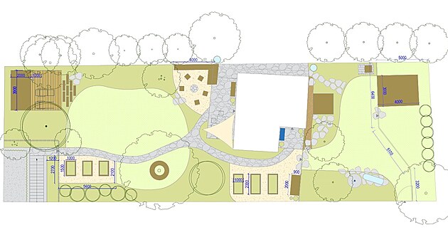Právě trávníku jsou v zahradě dvě pěkné oválné plochy trávníku (viz koncept ve videu) vhodné nejen pro dětské vodní hrátky. A místo se našlo i pro ohniště s mlatovou plochou – právě ve videu je vidět i naprosto noblesní dřevník s vyvýšeným pelíškem pro dospělé i děti, který Martin skvěle vyvedl podle Denisiných požadavků. Aby ho prostě využili nejen pro uložení dřevo, ale maximální měrou i pro sebe.