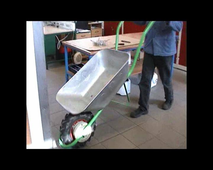 Elektrické kolečko je ve srovnání s běžným těžší, váží 30 kilogramů. Většinu nárůstu váhy má ale na svědomí elektromotor umístěný v kole, proto k vyklopení nákladu není potřeba větší síla.