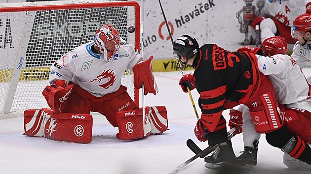 Přejít na online reportážOlomouc – Třinec 2:0Olomouc se po třetím vítězství za sebou nečekaně sune už na páté místo tabulky. Brankář Matěj Machovský, který v pondělí v Olomouci prodloužil smlouvu do konce sezony, v sedmém zápase za Hanáky vychytal první čisté konto. Naopak dál pokračuje trápení Ocelářů ve venkovních utkáních. Obhájci pěti mistrovských titulů prohráli všech pět zápasů v nové sezoně na stadionech soupeřů a získali v nich jen dva body. První třetina nabídla vážnější šance jen během dvou přesilovek Olomouce, jinak se hrál spíše opatrný hokej s dobrou defenzivou obou týmů. V početní převaze domácí Fridrich z mezikruží trefil jen clonícího hráče před sebou, Káňův pokus skončil těsně vedle tyče a Plášek zamířil do brankové konstrukce. Také druhá třetina nabídla šance až v přesilové hře Třince, jenže nadějný pokus Sikory vykopl Machovský betonem. V oslabení mohl naopak vstřelit branku olomoucký Doktor, ale ani nadvakrát Mazance nepřekonal. Z dobré pozice poté střílel hostující Dravecký jen do hrudi olomouckého brankáře a Teplého střelu zablokovali bránící hráči. První branka tak padla až tři minuty před koncem druhé třetiny, kdy Kunc vybojoval puk u zadního mantinelu, předložil ho před branku Orsavovi, který zamířil přesně pod horní tyčku. Vzápětí se v úniku dvou proti jednomu ocitli Musil s Andělem. Prvně jmenovaný vzal zakončení na sebe, z dobré pozice však Mazancovu branku netrefil. Na začátku třetí třetiny Třinec zvýšil aktivitu a už po minutě a půl Hudáček střelou z první jen těsně minul branku domácích. Ve druhé polovině třetí třetiny se hra znovu vyrovnala a Olomouci se podařilo odskočit do dvoubrankového náskoku. Branku vstřelil nejproduktivnější hráč domácích Fridrich, jenž úspěšně tečoval Rutarovu střelu od modré čáry. Třinec v závěru sáhl k tříminutové hře bez brankáře, zásah naděje už však nezaznamenal. Zobrazit více Sbalit |