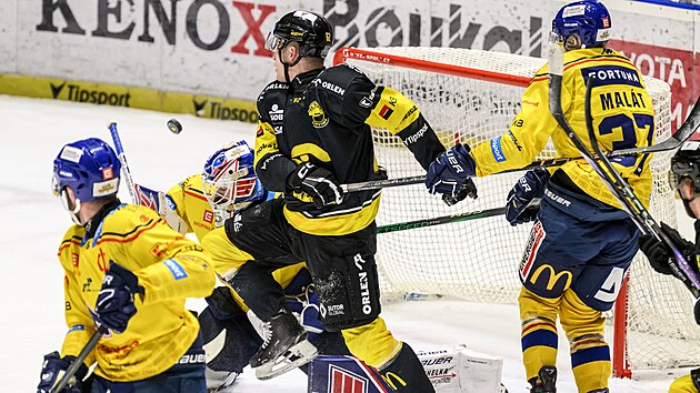 Přejít na online reportážHradec Králové – Plzeň 2:3PPlzeň potvrdila velmi dobrou bilanci na stadionech soupeřů, v Hradci Králové zaznamenala už šesté venkovní vítězství v řadě. V prodloužení rozhodl o výhře v čase 62:24 finský útočník Markus Nenonen. Plzeňský trenér Jandač dopřál oddech gólmanovi Malíkovi a poprvé od 27. října se do branky postavil Hrenák. Úvodní gól nicméně inkasoval jeho krajan a oponent Škorvánek, jenž v sedmé minutě nestačil na střelu Pšeničky. Sedmnáctiletý obránce se opřel do Nenonenovy přihrávky a slavil druhý zásah v extralize. Hradec Králové odpověděl hned po 144 sekundách, když Jergl rychle skočil na led ze střídačky a v přečíslení prostřelil Hrenáka mezi nohy. Domácí tím odstartovali silnou pasáž, v níž měli několik příležitostí k obratu. Pláněk ale před brankářem zbytečně nahrával, Tamášiho teč vyškrábl Hrenák a neujala se ani 28 sekund dlouhá přesilovka pět na tři. Před koncem druhého trestu Škodovky naopak ujel dopředu Rohlík, jehož kličku musel zastavit nataženým betonem Škorvánek. V polovině utkání přetavili hosté konzistnější výkon v druhou vedoucí branku, která byla velmi šťastná. Na konci nepříliš vydařené přesilovky se do puku opřel Merežko a hradecký Bunnaman tečoval puk takřka dokonale do protipohybu vlastního gólmana. Aktivní Urban navíc v dalším střídání jen těsně nezakončil svůj blafák do prázdné branky. Ačkoli šlo o střet dvou týmů s nejhorší úspěšností početních výhod, tuto situaci nakonec využil i Mountfield. Jergl posunul v rychlé akci Batnovi a lotyšský útočník ve 45. minutě vyrovnal. Jeho tým z pokračující aktivity brzy ustoupil a oba soupeři spíše kontrolovali remízu. V prodloužení během jediného střídání trefil hradecký Perret tyčku a Měchura ztroskotal na vynikajícím zákroku Škorvánka lapačkou. Po dvou minutách propadl v útoku Jergl a přečíslení Plzně zakončil přesnou střelou do Nenonen. Zobrazit více Sbalit |