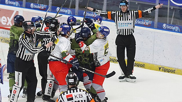 Škorvánek (F. Novotný) – Freibergs, Mudrák, McCormack, Vukojevic, Bučko, Kalina, Pláněk (A) – Perret (C), Kevin Klíma, Jergl – Miškář, R. Pavlík, Šťastný – Bunnaman, Dmowski, Chalupa – Batna, Pour, Pilař – Štohanzl.